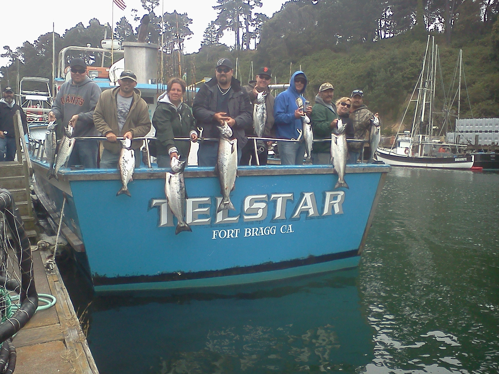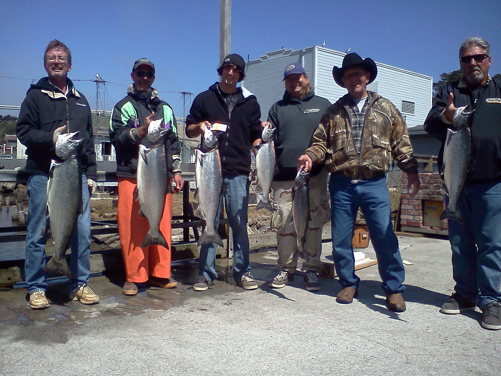 Today, the 4th I headed back up to Cleone again. It seems there are fish being caught pretty much everywhere from Noyo River to Ten Mile River from 50 feet of water to 250 feet. No big scores but keeper kings never-the-less. Today’s spotlight fisherman was Davan Green out of Chico. He is just 5 1/2 years and he landed his first salmon. Davan caught it on a rattlesnake hoochie over a whole Herring 35′ down on a downrigger. Way to go Davan!! Final score for the day; 5 fish for 8 anglers. Local Patty Fereira not only caught her first legal king, but she landed 2 of them! She was fishing with a red rotary killer 35′ on a downrigger.