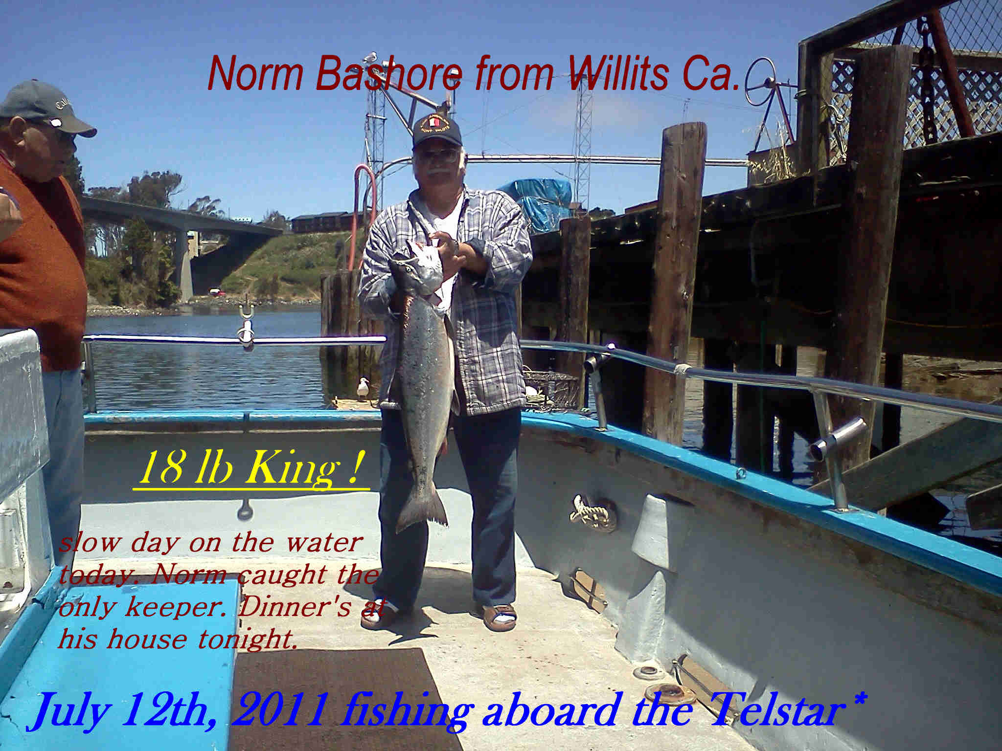 July 2, 2011 — I had two trips today. Fished salmon both trips. We fished up north where we had fish yesterday in 170 ft of water. Conditions the same. This ocean is beating me up. Not much of a swell but the winds are staying close and the wind waves are steep and close together. Thank goodness for some fish showing up. We had 12 people each trip. On the morning trip we ended up with a fish per rod. In the afternoon we ended up with 8 keepers of about the same grade as the morning. Of the 12 fish on the a.m. trip, 5 were over 20 pounds. Biggest fish was 24 pounds landed by local Wayne Giannini. Fish-On!