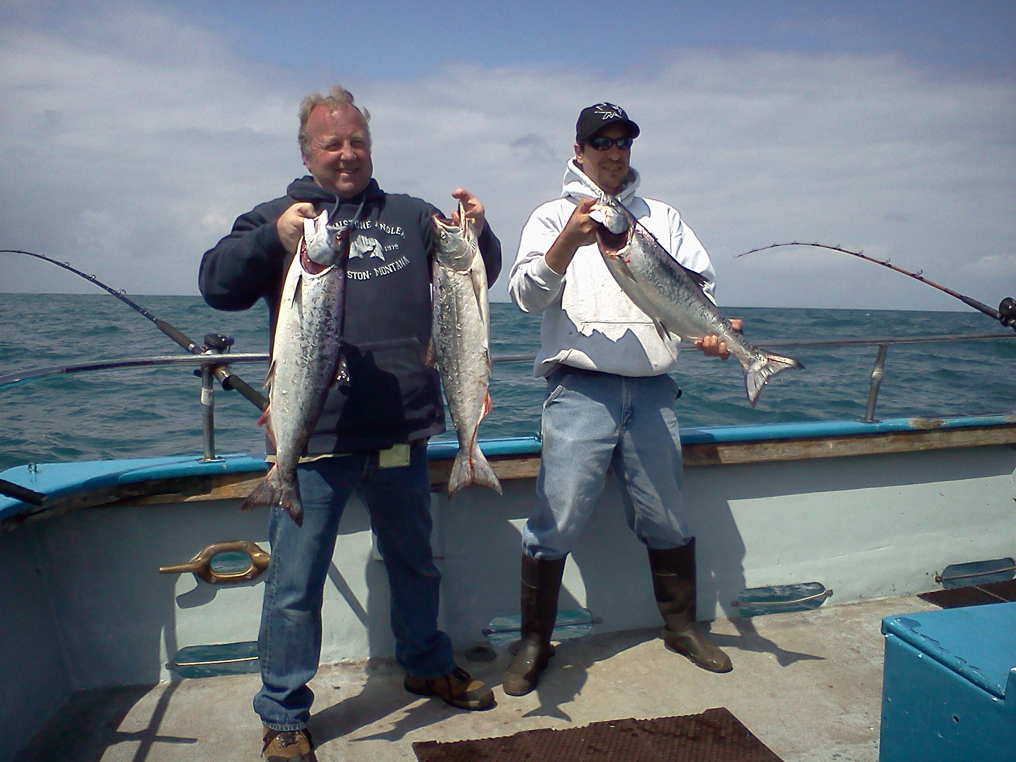 Picture; on the left is Chris Pedersen from Sac. and next to him is Abel Duren from SanJose. The fish rainged from 8 to 10 pounds.Fish-On!!